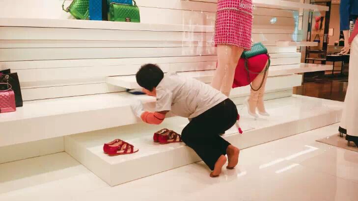 說(shuō)起國際一線(xiàn)品牌的奢侈品店,人們腦海里一定會(huì )立刻浮現出各種“高大上”的畫(huà)面,或金光閃閃,或清新優(yōu)雅,或深不可測,或人影綽綽;店內幽香浮動(dòng),一塵不染,高級裝飾服務(wù)員個(gè)個(gè)年輕靚麗,笑容可掬,英語(yǔ)流利,溫情禮貌;商品陣列更是像拍廣告大片,每個(gè)角度都是完美呈獻。而奢侈品店的保潔要求就是:雞蛋里挑骨頭。在這里,高科技設備發(fā)揮不了什么作用,機器人也不可能靈敏到這個(gè)程度,而因各店裝飾及要求迥然不同,需要個(gè)性化、細致化的清潔。這些“高大上”表面背后有著(zhù)一群膽大心細之人。