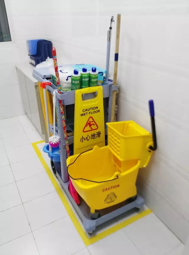 啟示:醫院物業(yè)衛生工具分區使用,定位擺放是為了預防交叉感染,利于病人康復。在其他業(yè)態(tài)雖然沒(méi)有這么高的要求,如果也實(shí)行工具分區使用,定位擺放,服務(wù)水平便會(huì )有立竿見(jiàn)影的提高。