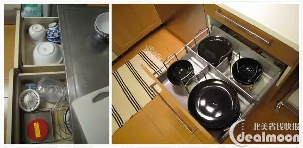 廚房這樣會(huì )放置很多物品的地方,大家都知道要盡可能多得做一些抽屜??墒浅閷隙?,不一定代表整潔。相信下圖的左邊,大家看著(zhù)并不陌生。