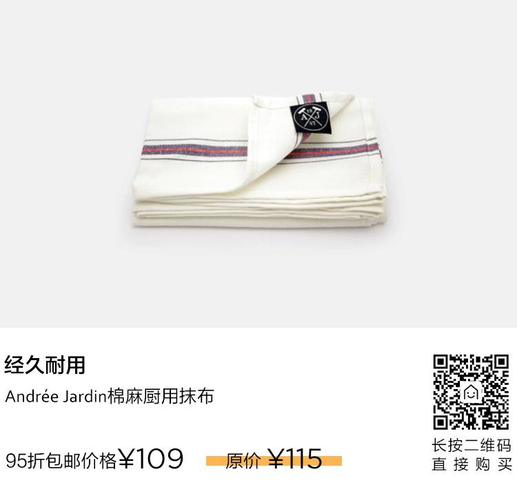 普通的抹布總是用不了多少次就會(huì )破,需要經(jīng)常更換,既浪費錢(qián)又不環(huán)保。Andrée Jardin的這塊抹布采用了法國古老的紡織技術(shù),更加堅固耐用,知道啦