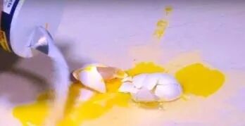 13. 蛋掉到地上后會(huì )留下黏黏的污漬,清理蛋殼還可能會(huì )刺到手,只要撒上食鹽放置15分鐘,再用紙巾擦起來(lái)就可以了。