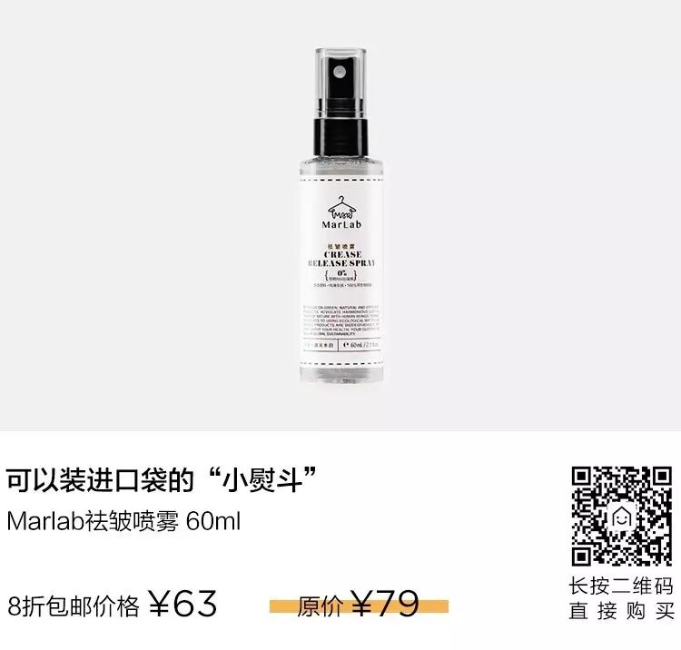 衣服皺了?沒(méi)關(guān)系!拿出Marlab祛皺噴霧,噴一噴,拉一拉,靜置一會(huì )兒,衣服就會(huì )平整如新。不含增稠劑和防腐劑,100%可生物降解,無(wú)毒無(wú)害,不會(huì )損傷衣物也不會(huì )影響身體健康。泵頭和瓶身采用的都是環(huán)保材質(zhì),完全可以放心使用。