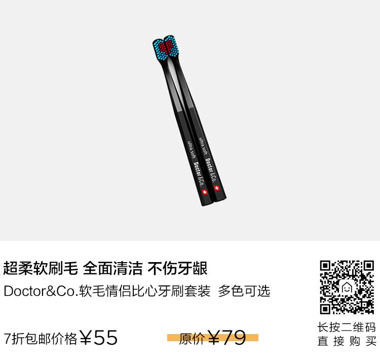 Doctor&Co.牙刷是瑞士人用做軍刀和手表的心思設計出來(lái)的作品,采用高密度植毛工藝,刷毛的直徑僅有0.1mm,不僅細,而且極其柔軟,在刷牙時(shí)能溫柔地深入齒縫和牙齒與牙齦的交界處,在不損傷牙齦的情況下,更徹底地清潔食物殘渣。