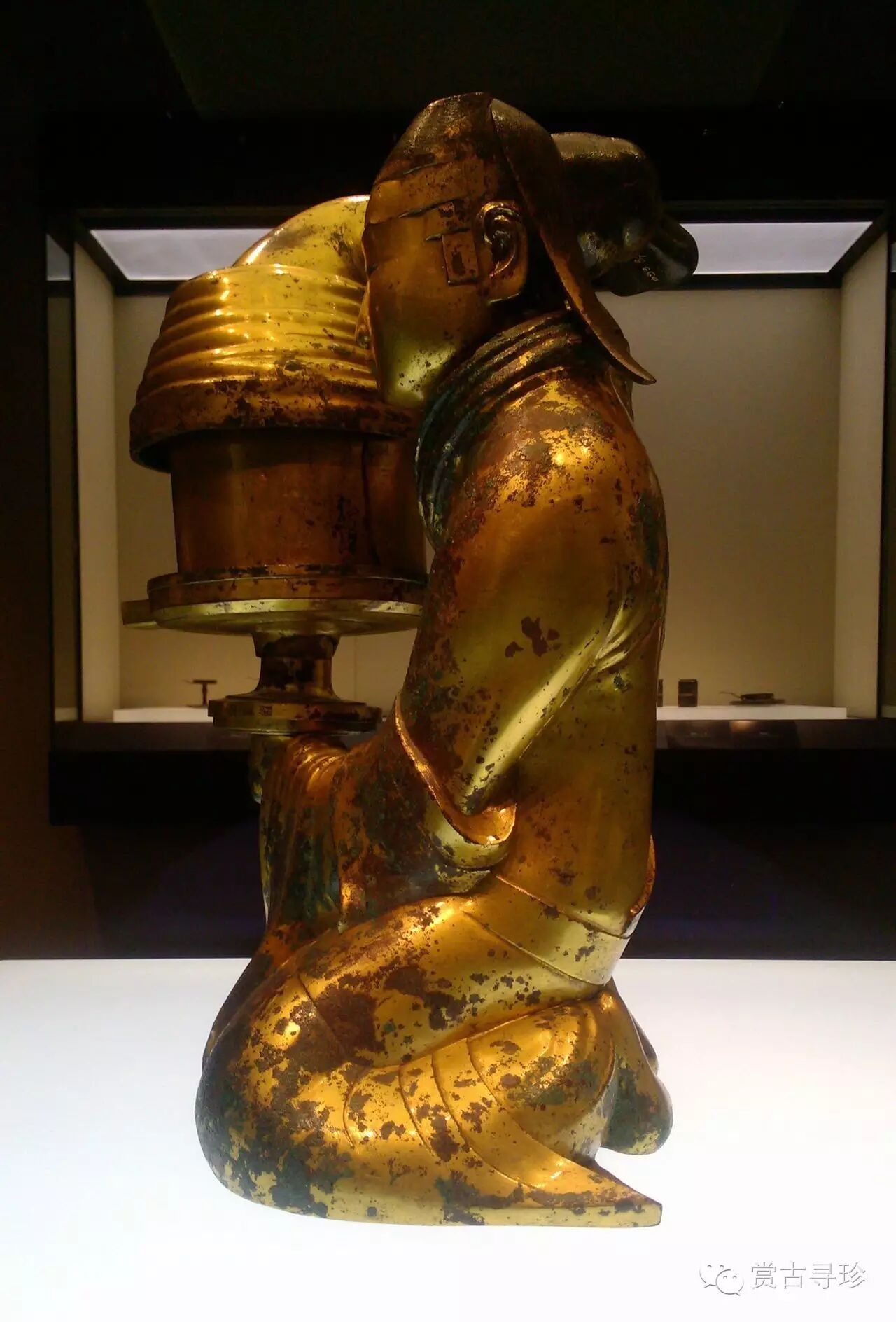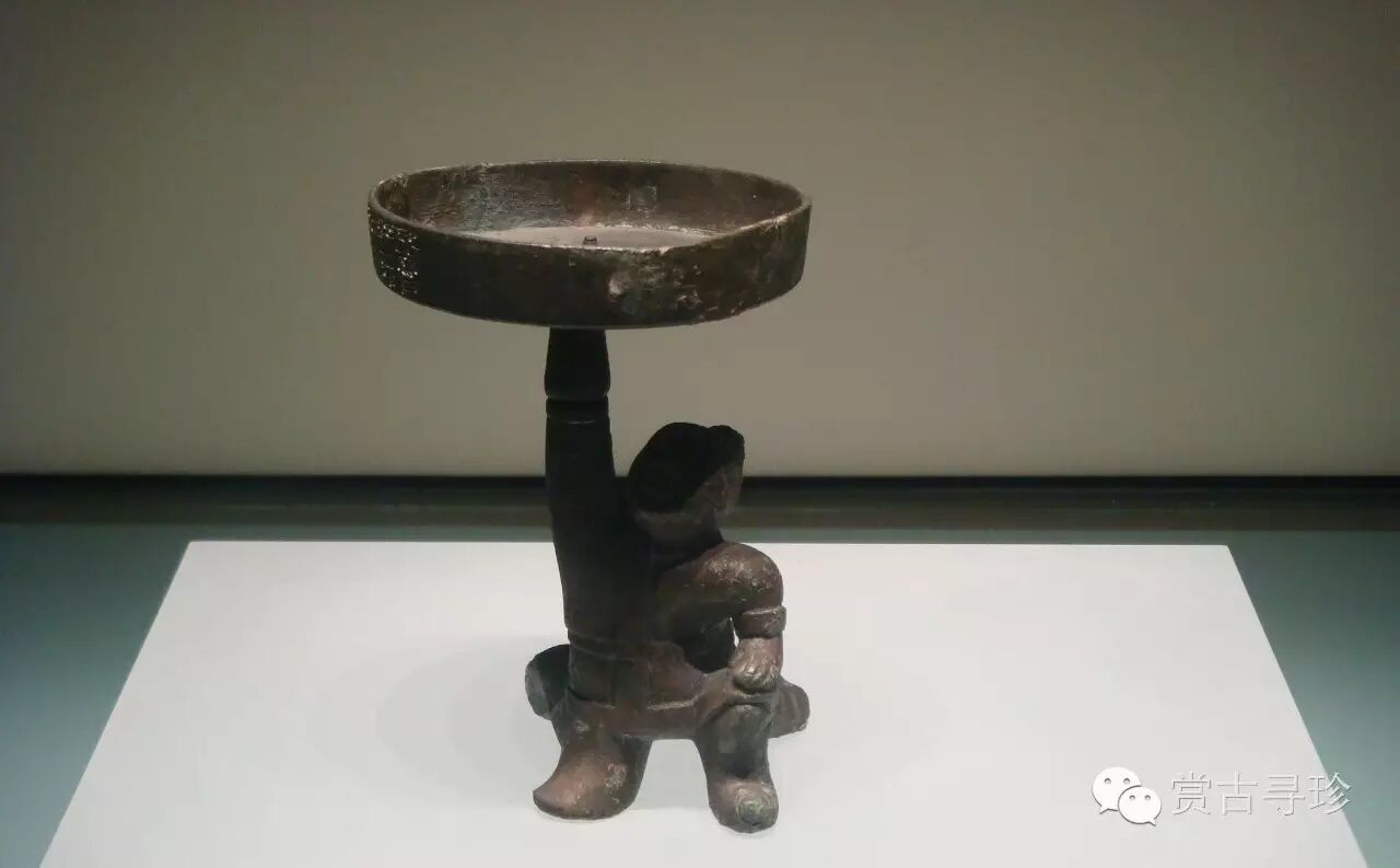 出土于劉勝的夫人竇綰墓。外形是個(gè)宮女跪坐執燈的形象,燈高48厘米,