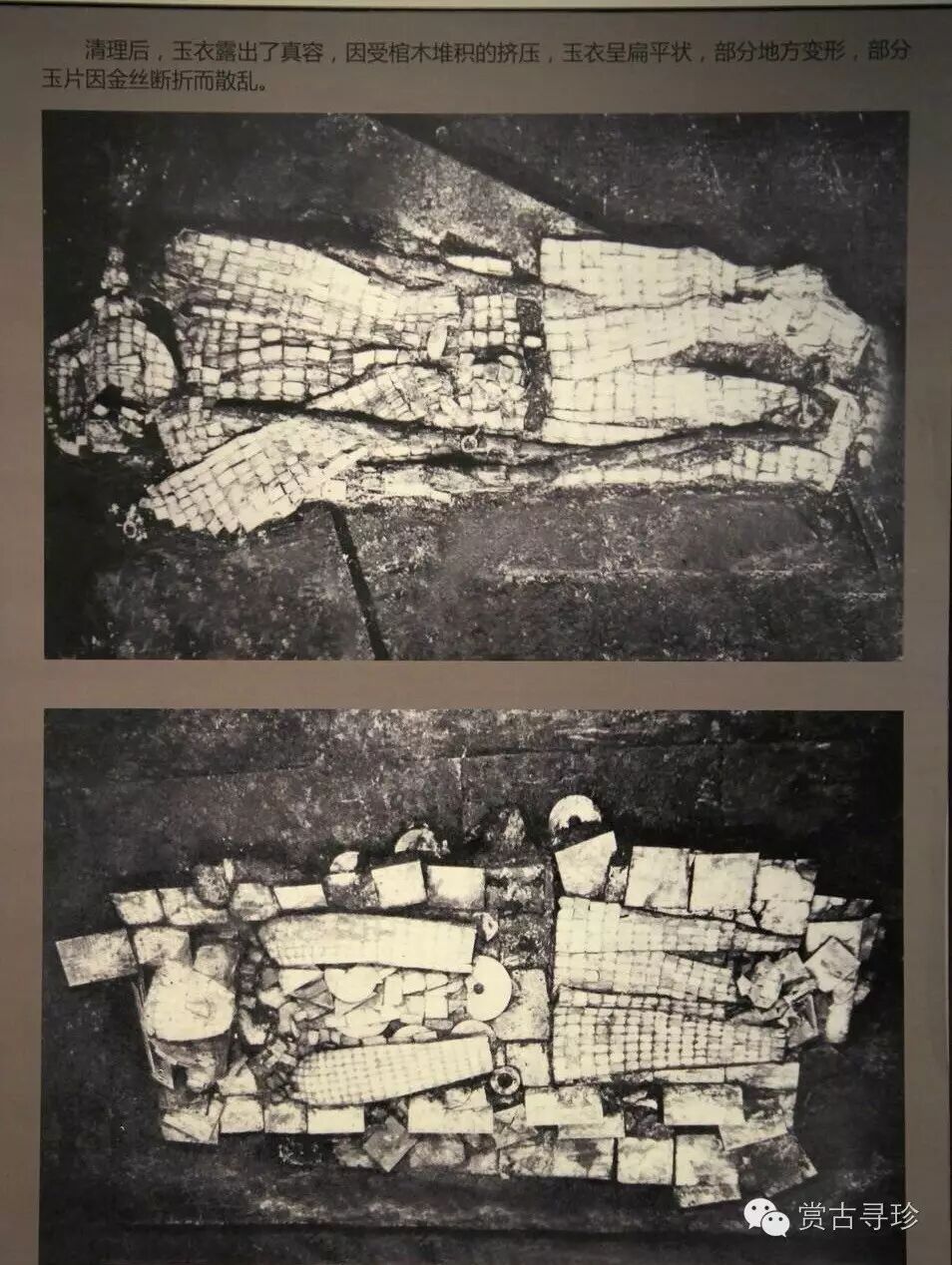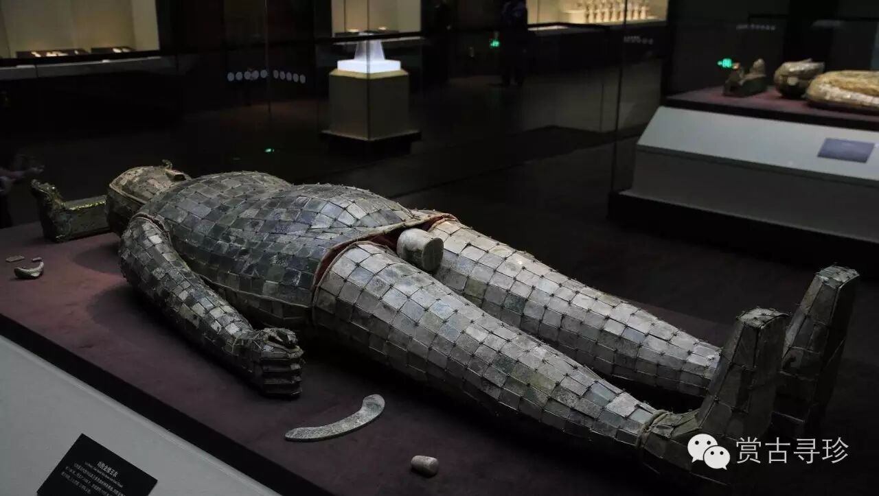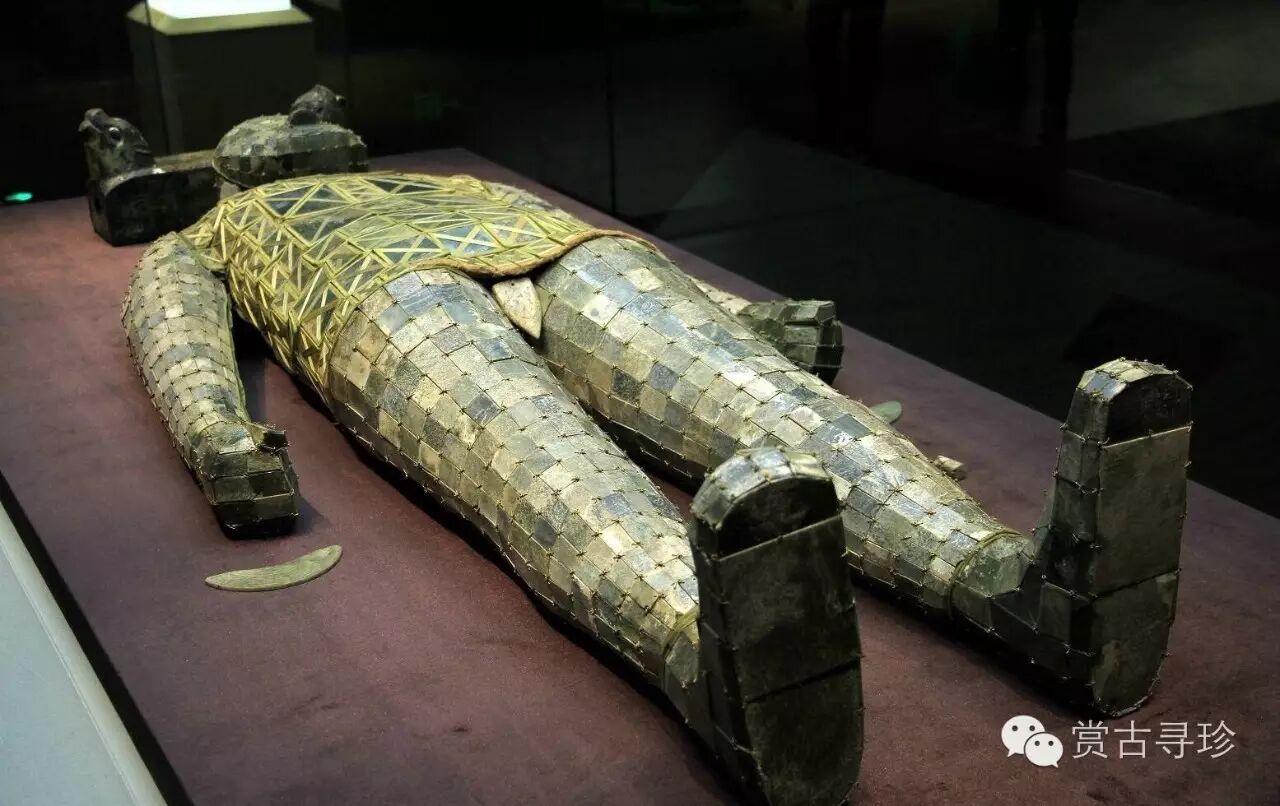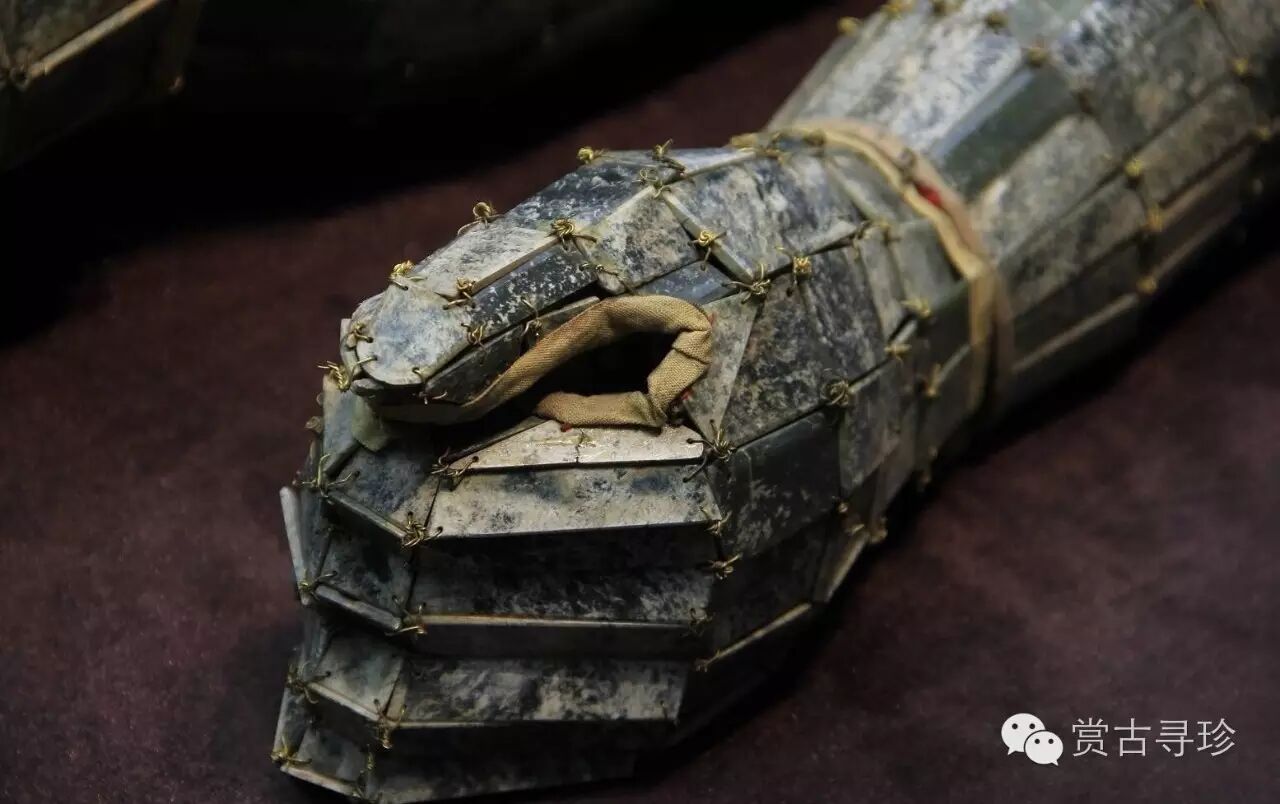 “玉衣”是漢代皇帝和高級貴族死后的殮服。玉衣用玉片制成,玉片間以金絲編綴。(根據《后漢書(shū) 禮儀志》記載,皇帝的“玉衣”用金縷,諸侯王、列侯始封、貴人、公主用銀縷;大貴人、長(cháng)公主用銅縷。劉勝是諸侯王,如按《后漢書(shū)》所載,只能使用“銀縷玉衣”,而實(shí)際出土的卻是“金縷玉衣”。古代統治者用玉衣作為葬服,從西漢一直延續到東漢末年,直到魏文帝曹丕下令禁止使用玉衣,說(shuō)這純屬“愚俗所為也”。從此,這一葬服制度才消除了。)