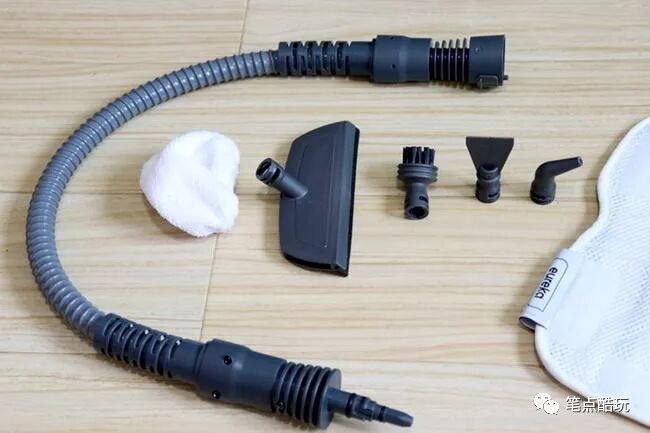 此前提到,eureka蒸汽清潔機SC5擁有豐富的配件,其中組裝整機需要將地刷與手持連接,手持式則可以選擇多種刷頭來(lái)工作。前者組裝后可以作為傳統推桿拖把,用于地板或者地毯清潔,后者則可以清潔室內各類(lèi)平面污漬、器具表面,甚至一些平時(shí)不易清潔到的角落和蒸熨衣服它也能輕松搞定。