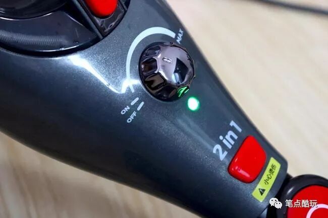 此外,旋鈕下方還有一枚蒸汽指示燈,可以在以紅綠色提示,會(huì )在開(kāi)啟蒸汽旋鈕后先顯示紅色表示剛加熱需等待(官方說(shuō)明為30秒),再變綠色表示已經(jīng)可以啟用蒸汽清潔。事實(shí)上在使用時(shí),基本剛剛通電,不到10秒鐘就可以啟用蒸汽了,即通電即用的效率非常高。