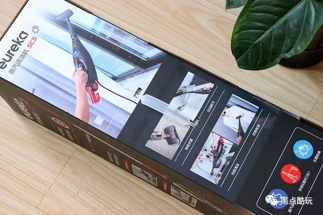 由于eureka蒸汽清潔機SC5可以便捷拆裝,包裝盒也僅有半人高度,包裝上“來(lái)自美國的深層清潔專(zhuān)家”字樣比較顯眼,其次是產(chǎn)品外觀(guān)圖和多效合一的功能和使用展示,黑底色與清潔機的紅色部件搭配有一種現代家居工具的美感,整個(gè)包裝的彩印設計也能讓人感受到產(chǎn)品的科技賣(mài)點(diǎn)。
