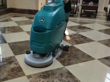用高檔強力洗地機+硬質(zhì)地坪清洗劑處理地磚表面,用真空吸水機清理,使地面清潔更顯光澤。