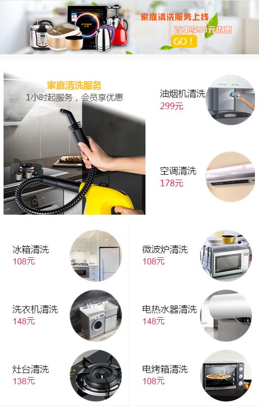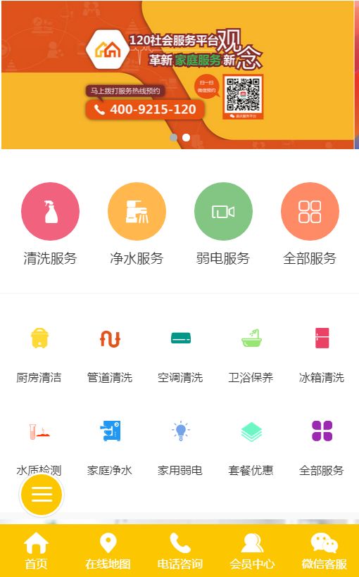 為你服務(wù)120網(wǎng)站主體頁(yè)面看起來(lái)很簡(jiǎn)單、整潔,包括上面的2張輪播圖,下方是廚房清潔、管道清洗,空調清洗、衛浴保養、冰箱清洗,再往下水質(zhì)檢測、家庭凈水、家用弱電、優(yōu)惠套餐等更為豐富的產(chǎn)品線(xiàn)??梢哉f(shuō)在頁(yè)面整體感觀(guān)上是很不錯的,給人一種簡(jiǎn)潔流暢的體驗,并重點(diǎn)突出了家庭清洗服務(wù)這一拳頭產(chǎn)品。如下圖: