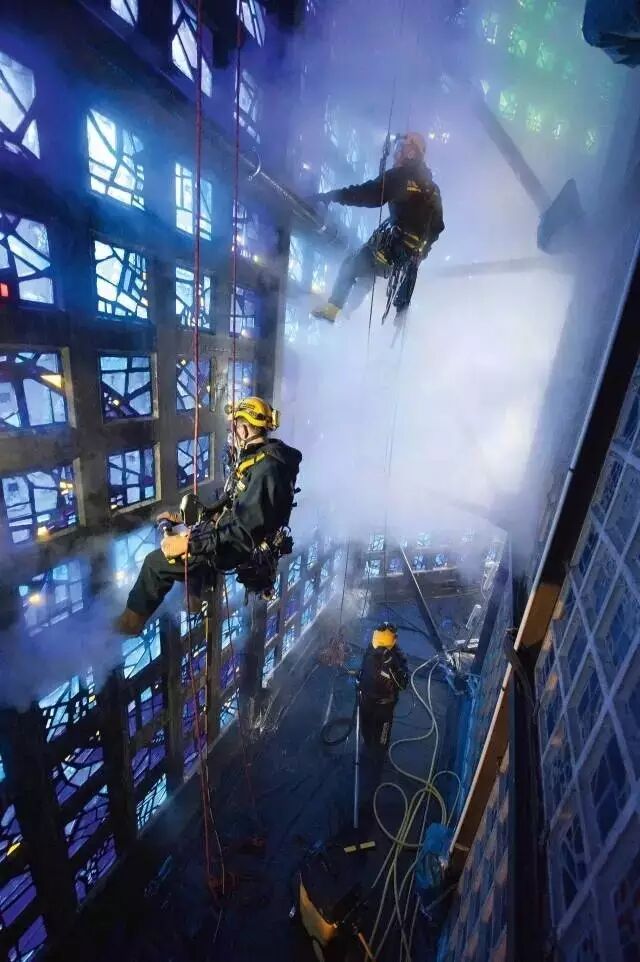 哇塞,清洗一個(gè)巨大的建筑物,那畫(huà)面真的太壯觀(guān)了。