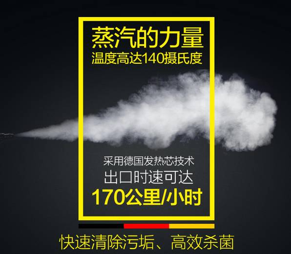 170公里/小時(shí)的高速+10KG/c㎡高壓,蒸汽強勁,能讓頑固污漬瞬間瓦解。