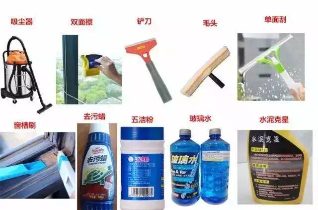 1、洗衣粉;2、84消毒液;3、潔廁靈 1瓶;4、稀釋劑(能專(zhuān)門(mén)干掉那些難擦的膠,但不能用于烤漆面)