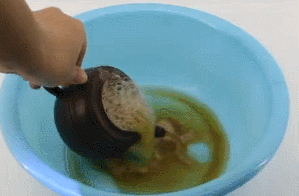 在清潔顆粒溶液里泡一泡