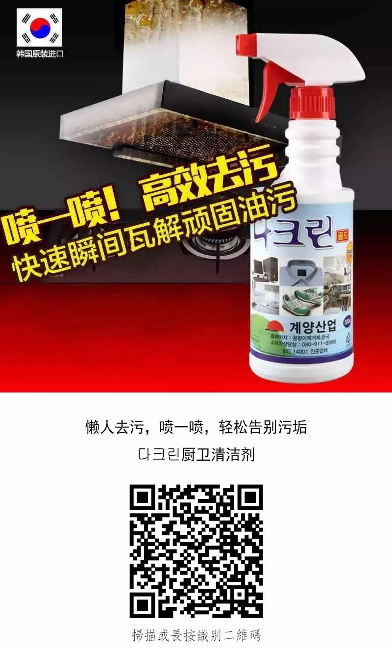 比如第一個(gè)韓國清潔噴霧,理解成化學(xué)成分減少狠多但清潔效力超強狠多的 84 清潔劑或者油污清潔劑就好了。