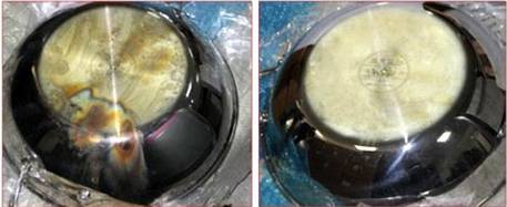 并使污垢體積迅速膨脹,與基底脫層