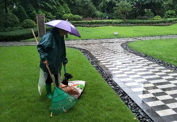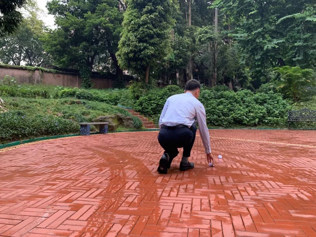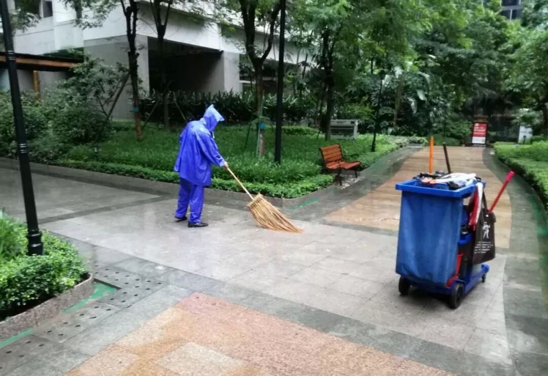 雨后30分鐘內清掃路面積水;擦拭干凈休閑桌椅,讓您在雨后30分鐘內即可使用?