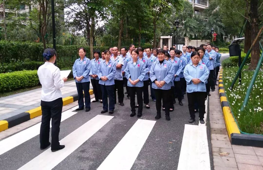 每日上班(下班)前,在園區人員流動(dòng)密集區域,集中清潔、綠化人員進(jìn)行10分鐘的班后會(huì )議,重點(diǎn)總結當天或前一天的“百優(yōu)行動(dòng)”執行情況及強調執行要求、強調大客服服務(wù)要求、展現團隊專(zhuān)業(yè)形象與積極的精神面貌。